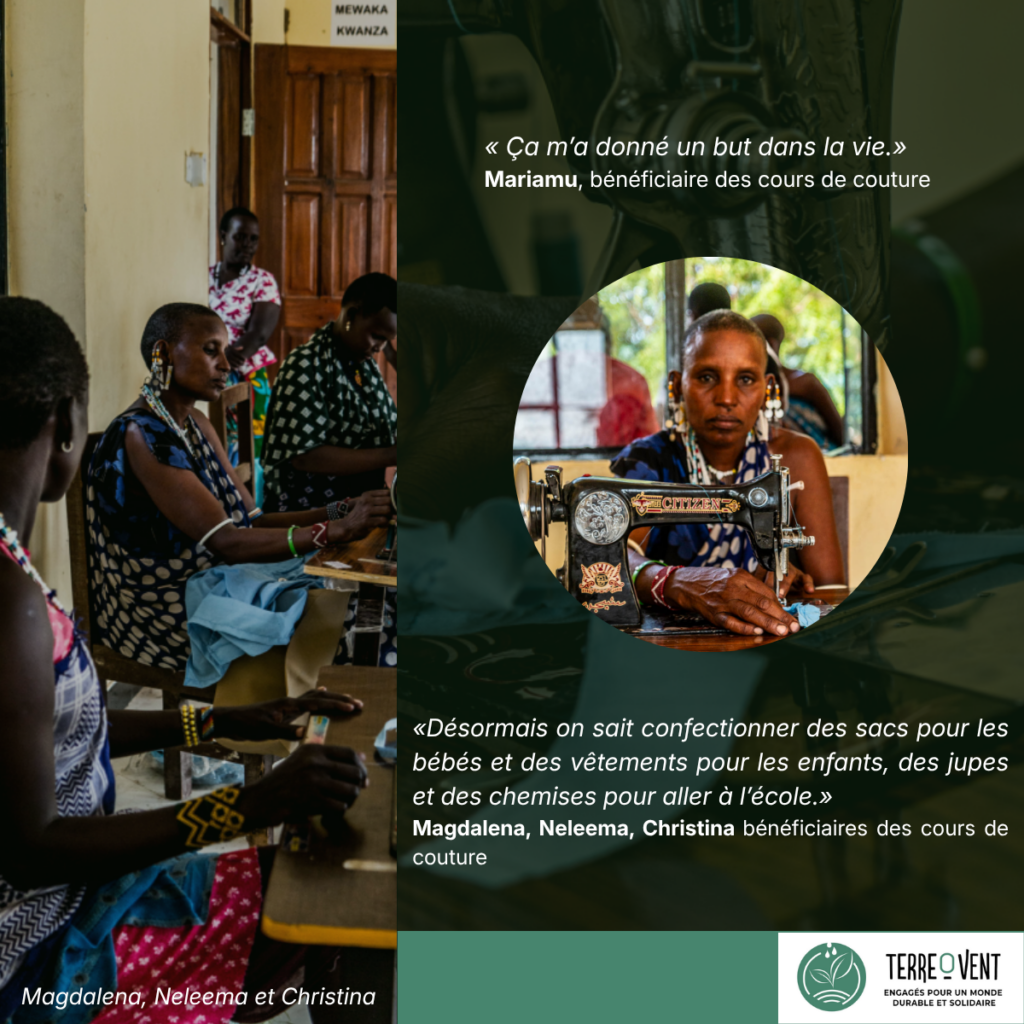 Grâce aux cours de couture et les séances d’éducations à la sexualité, les femmes bénéficiaires ont pu mettre en place un système de microfinancement ; elles fabriquent des serviettes hygiéniques lavables qu’elles revendent, contribuant ainsi à lutter contre la précarité menstruelle.